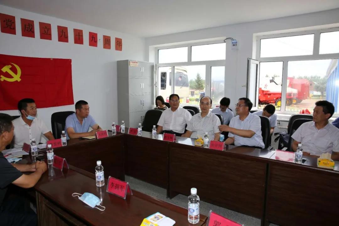 在興隆鄉(xiāng)新建村,焦開河聽取了大崗村、新發(fā)村和新建村關(guān)于農(nóng)機服務(wù)隊項目運行情況、收益和減貧的情況介紹,詳細(xì)了解了項目幫扶機制及未來發(fā)展想法。焦開河表示,農(nóng)機服務(wù)隊不僅實現(xiàn)了對貧困戶的幫扶,還可以通過創(chuàng)收、維護、解決就業(yè),帶動農(nóng)業(yè)機械化發(fā)展,是一個可持續(xù)項目。他強調(diào),下一步要整合好各村農(nóng)機服務(wù)隊,實現(xiàn)更大規(guī)模的連片種植。焦開河專門叮囑集團公司派駐大崗村第一書記吳寶明,要充分發(fā)揮駐村第一書記作用,抓好黨建工作,積極培育致富帶頭人,為大崗村后續(xù)發(fā)展奠定好基礎(chǔ)。