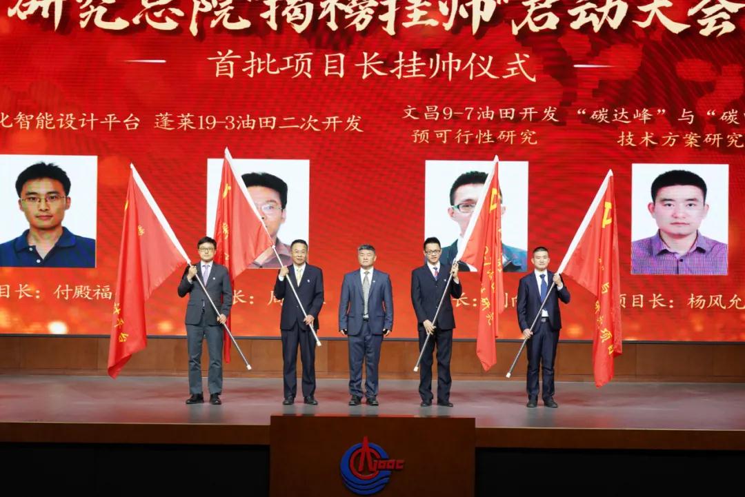 圖為中國海油所屬研究總院揭榜掛帥啟動大會首批項(xiàng)目長掛帥儀式。