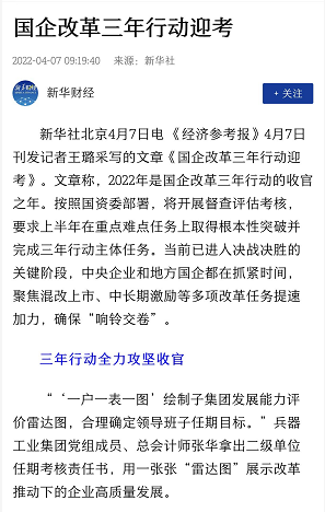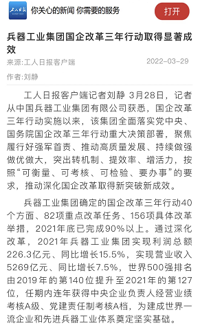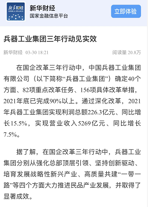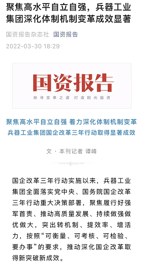 兵器工業(yè)集團(tuán)國(guó)企改革三年行動(dòng)工作成效引發(fā)廣泛關(guān)注丨國(guó)企改革看兵器