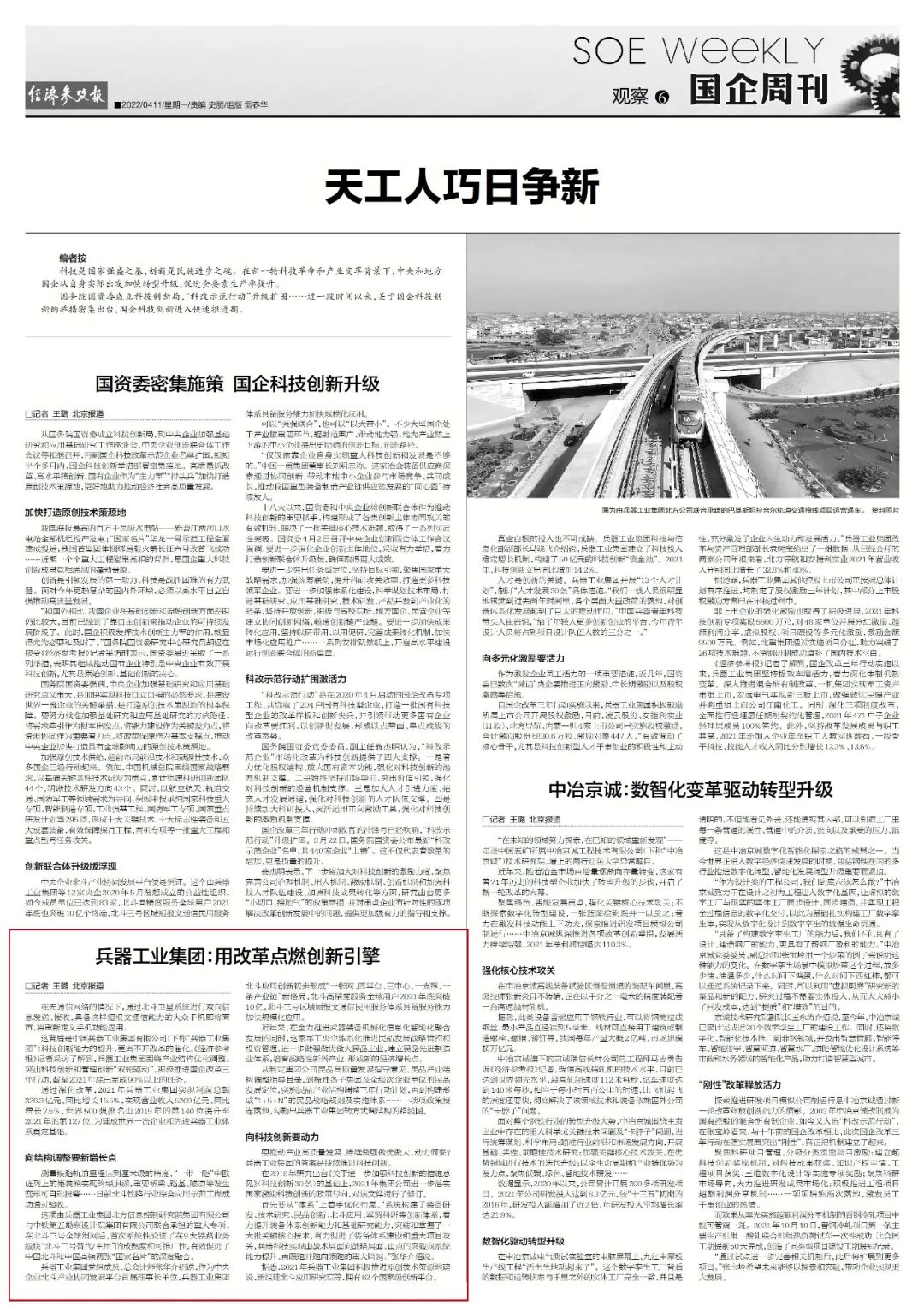 《經(jīng)濟(jì)參考報(bào)》:兵器工業(yè)集團(tuán):用改革點(diǎn)燃創(chuàng)新引擎
