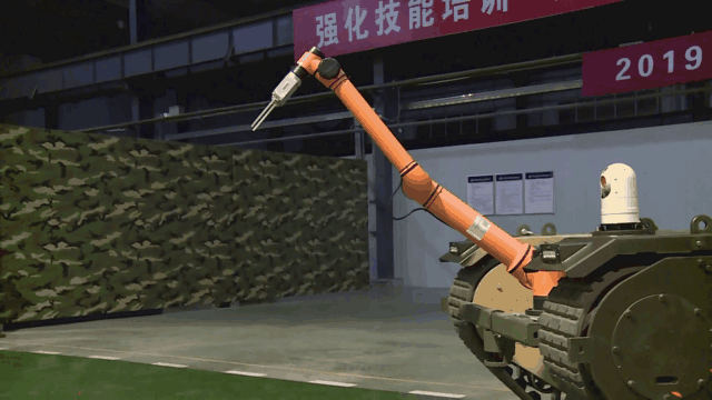搭載機(jī)械手的多功能模塊化履帶無(wú)人平臺(tái),就像一個(gè)靈活的機(jī)器人,面對(duì)地上的障礙物,利用機(jī)械手將抓取到的危險(xiǎn)物品,穩(wěn)穩(wěn)地投擲到防爆倉(cāng)里,在現(xiàn)場(chǎng)無(wú)人操控的情況下,圓滿完成應(yīng)急救援任務(wù)。