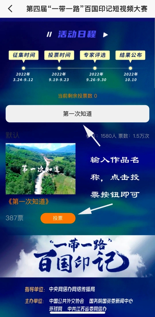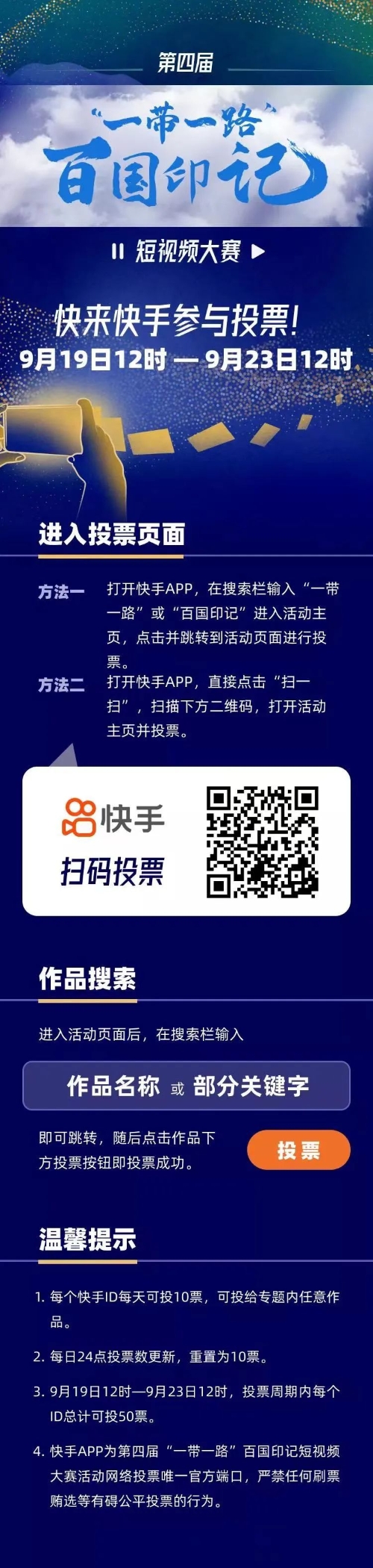 9月19日,由中央網(wǎng)信辦網(wǎng)絡(luò)傳播局指導,中國公共外交協(xié)會、國務(wù)院國資委新聞中心、環(huán)球網(wǎng)和中共江蘇省委網(wǎng)信辦聯(lián)合主辦的第四屆“一帶一路”百國印記短視頻大賽完成作品征集,正式開啟投票階段。