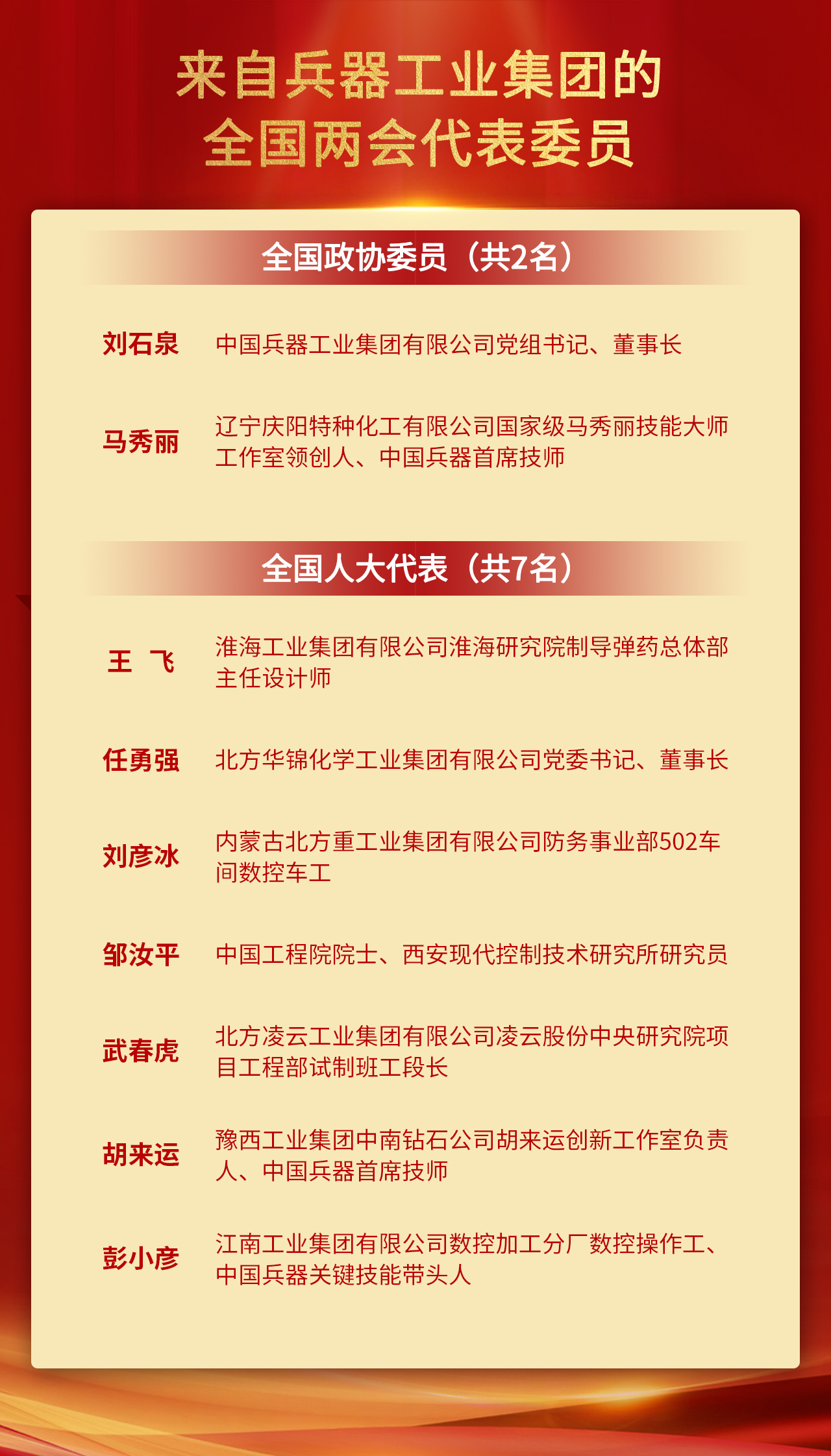 今年,兵器工業(yè)集團(tuán)共有9名代表委員參加全國兩會(huì),積極參政議政、建言獻(xiàn)策,為推動(dòng)我國經(jīng)濟(jì)社會(huì)發(fā)展貢獻(xiàn)兵器智慧。