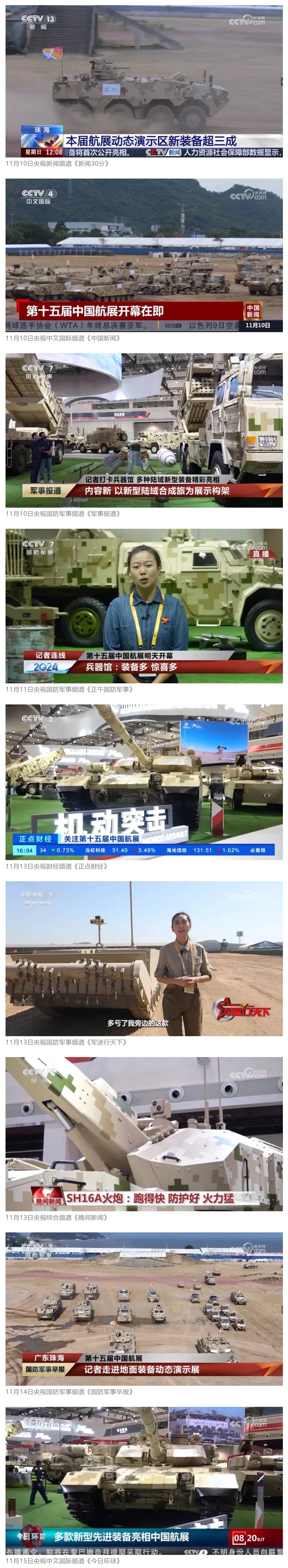 新華社、央視新聞、中央廣播電視總臺中國之聲、央視軍事、中國軍視網(wǎng)、廣東廣播電視臺等媒體以及國家國防科工局、國資小新等到兵器工業(yè)集團地面動態(tài)演示區(qū)、中國兵器館進行了直播。