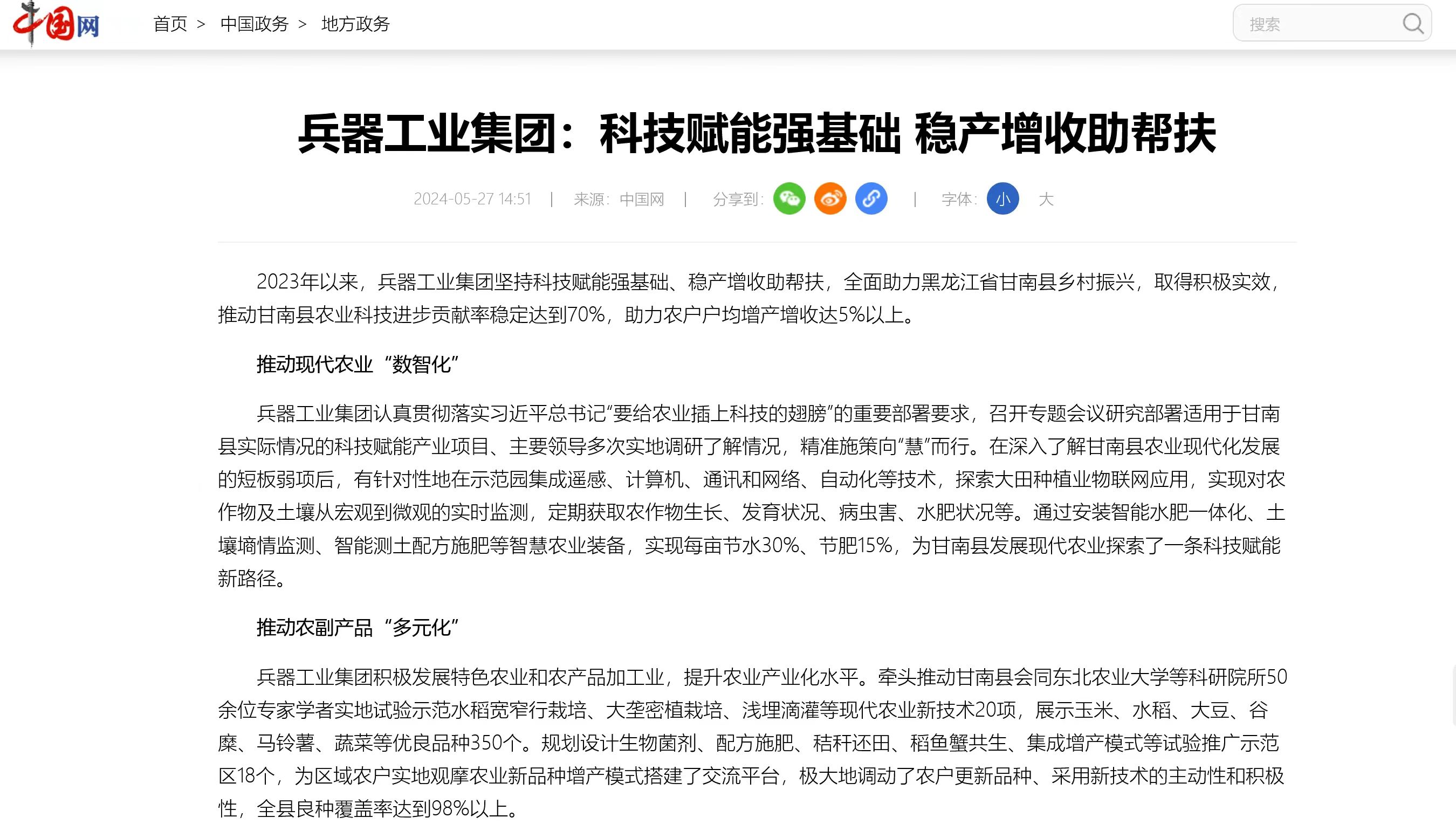 中國網(wǎng)報(bào)道兵器工業(yè)集團(tuán)科技賦能 助力黑龍江省甘南縣鄉(xiāng)村振興