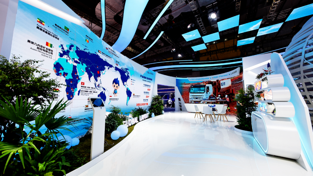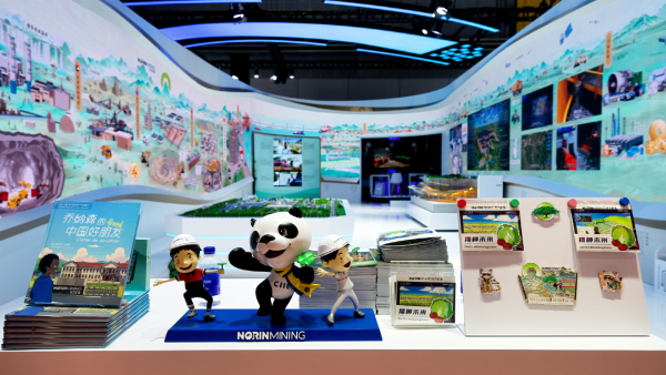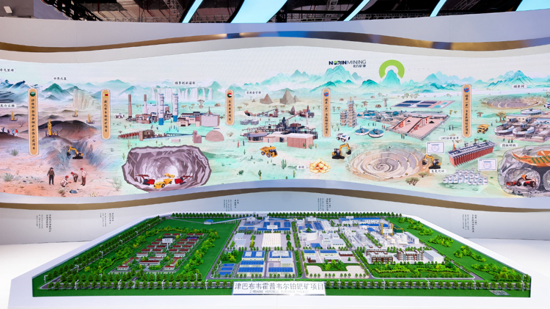 北方礦業(yè)組展展區(qū)以《千里江山圖》為創(chuàng)意,生動呈現(xiàn)了六個海外項目及礦產(chǎn)品貿(mào)易業(yè)務(wù),全方位展示了智慧礦山核心構(gòu)成,演繹“綠水青山就是金山銀山”的礦業(yè)新篇。