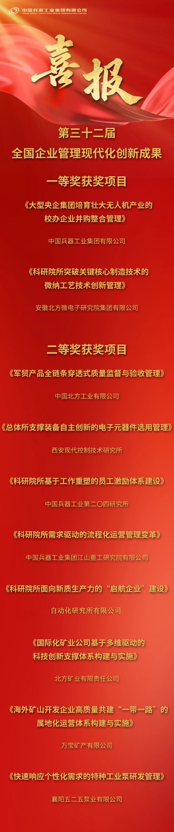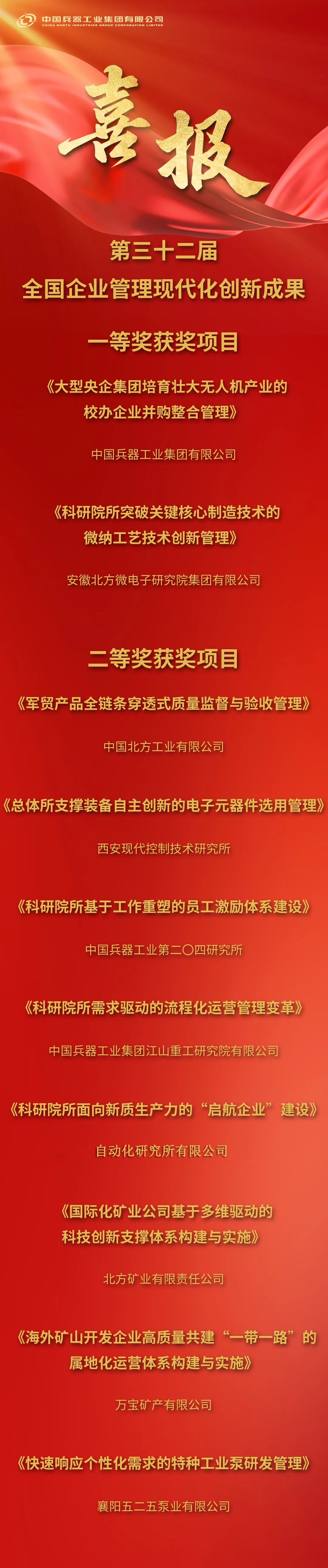 兵器工業(yè)集團(tuán)2025年度管理創(chuàng)新成果獲獎(jiǎng)名單發(fā)布2025-11-20