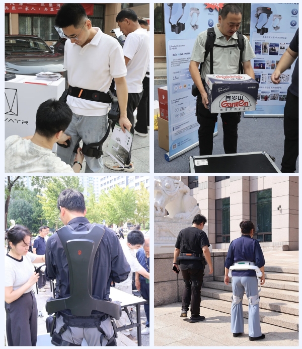 杭州智元研究院帶來了“踏山”髖部助行外骨骼、“搬山”腰部搬運外骨骼、“卸山”靈巧機動外骨骼等產品,廣大職工紛紛試用:穿戴“踏山”髖部助行外骨骼行走、上下臺階,感受科技帶來的輕盈與便捷;“搬山”腰部搬運外骨骼以及“卸山”無源外骨骼也憑借其強大的負重能力和智能動作識別能力引來贊嘆。大家圍繞產品開展交流,探索其在不同工作場景中的應用潛力。